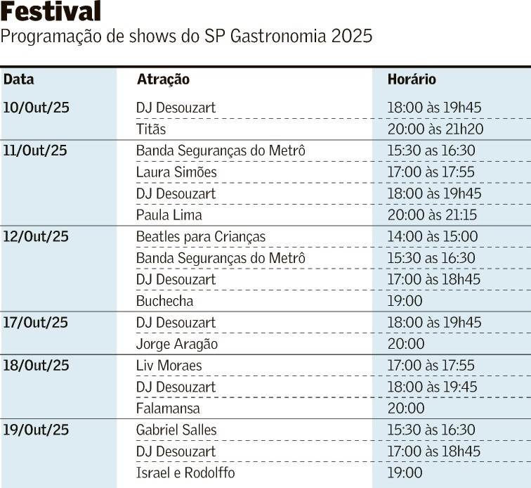 SP Gastronomia reunirá culinária e shows musicais